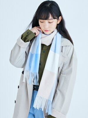 くすみ系のパステルカラーで仕上げた落着きのあるブロックチェックが魅力的なマフラーです。